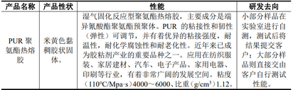 主體工程及制品方案:項目主要針對 PUR 聚氨酯熱熔膠
