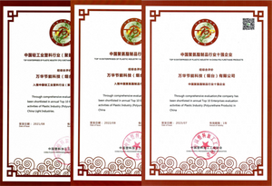 經中國塑料加工工業協會綜合評價,萬華節能科技煙臺公司再次榮獲“中國聚氨酯制品行業十強企業”稱呼,至今已連續3年獲此殊榮。