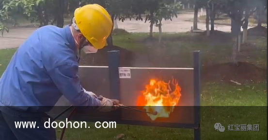 孫銘杰主任一行觀光了紅寶麗企業文化展廳和聚氨酯保溫板生產車間,現場觀看了聚氨酯保溫板燃燒對比試驗,對紅寶麗的聚氨酯保溫板品質給予了高度評價。